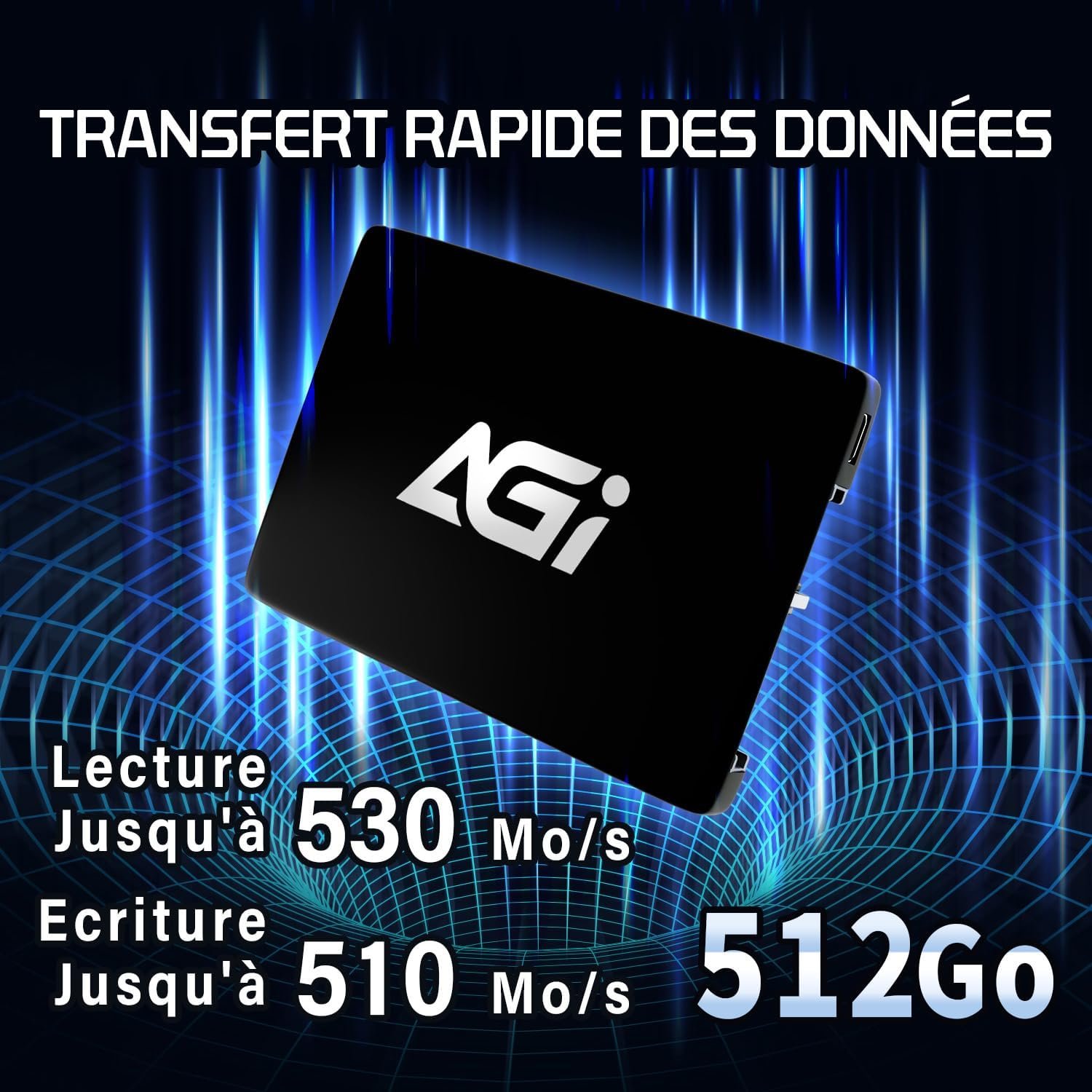 AGI AI238 512GB Internal Solid State Drive SSD, 3D TLC NAND Flash, 2.5″ SATA III, R/W Speed up to 530/510 MB/s – Black